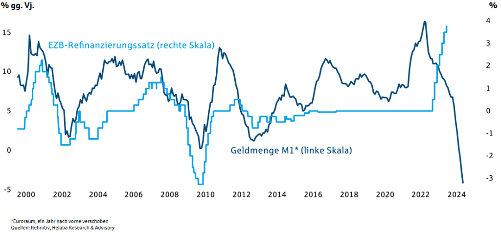 Und die Geldmenge im Euroraum schrumpft sogar im Rekordtempo.