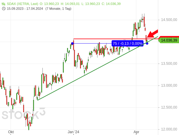 Und vor dem Hintergrund der aktuellen allgemeinen Marktschwäche hat auch der SDAX ein bearishes Signal gesendet, indem er unter sein Ausbruchsniveau des aufsteigenden Dreiecks zurückgefallen ist.