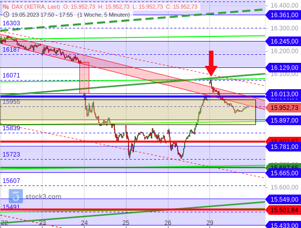 Damit die Bullen wieder punkten können, müssen sie auch noch die Abwärtslücke vom vergangenen Mittwoch vollständig schließen und den DAX darüber hinaus treiben. Denn dann könnte er sich wieder von der psychologisch wichtigen Marke von runden 16.000 Punkten nach oben lösen und die Bullen den nächsten Angriff auf das ehemalige Rekordhoch vom 18.11.2021 bei 16.290,19 Punkten starten. Ein solcher Angriff wäre ein klares Signal für die anhaltende Stärke der Bullen.