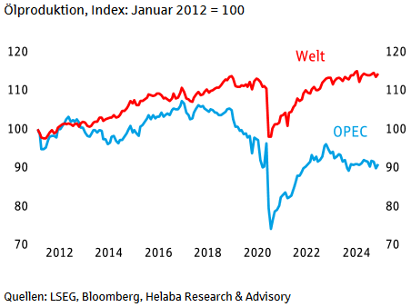 Was nicht ist, kann allerdings noch werden. Das sehen auch die Analysten von Helaba Research & Advisory so. „Vor dem Hintergrund des 2025 erwarteten Wachstums rechnen auch wir mit einem leichten Anstieg der Ölpreise im Verlauf der kommenden Quartale“, heißt es in der gestrigen Analyse.