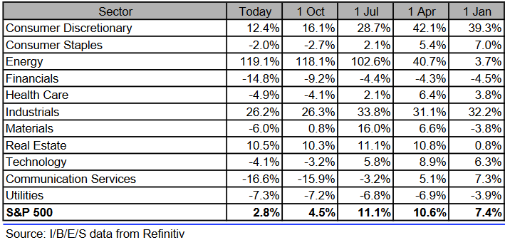Dabei gilt es jedoch wie üblich zu beachten, dass die Erwartungen vor Beginn der Berichtssaison kräftig zurückgeschraubt worden waren. Anfang Juli wirkten die Analysten noch am optimistischsten und gingen von einem Gewinnanstieg von 11,1 % im Vergleich zum Vorjahreszeitraum aus. Drei Monate später zeigten sie sich mit +4,5 % bereits wesentlich zurückhaltender. Und aktuell rechnen sie sogar nur noch mit einem Plus von 2,8 %.
