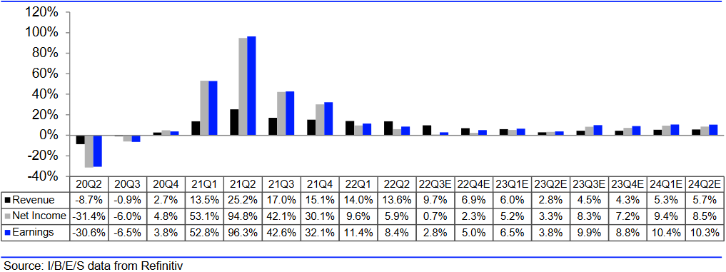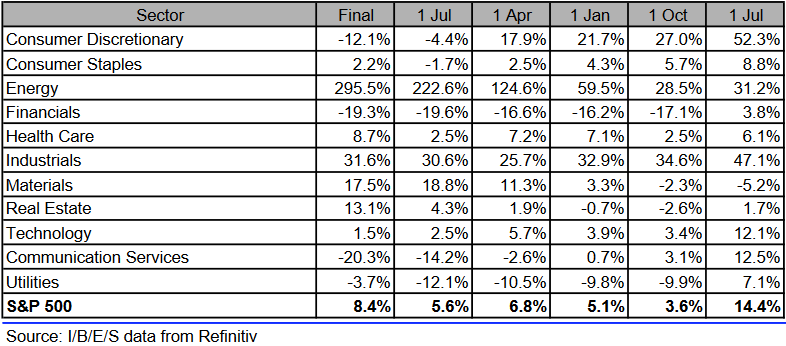 Aber zum Vergleich: Am 1. Juli war man für die Bilanzsaison zum 2. Quartal 2022 von einem Gewinnwachstum von 5,6 % ausgegangen. Am Ende erzielten die Unternehmen immerhin +8,4 %.