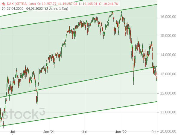 Ich erinnere mich derweil an eine Marktphase, in der es am Ende zu einer größeren Korrektur kam, nachdem der DAX auf hohem Niveau wild auf und ab pendelte. Das geschah Ende 2021 / Anfang 2022, übrigens innerhalb des (grünen) Aufwärtstrendkanals, in dem sich der DAX auch aktuell noch befindet.