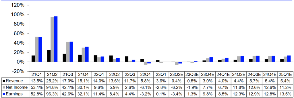 Insgesamt melden die Unternehmen bisher Umsätze, die 0,7 % über den Schätzungen liegen, was weniger als der 5-Jahres-Durchschnitt von 2,0 % und auch weniger als der 10-Jahres-Durchschnitt von 1,3 % ist.