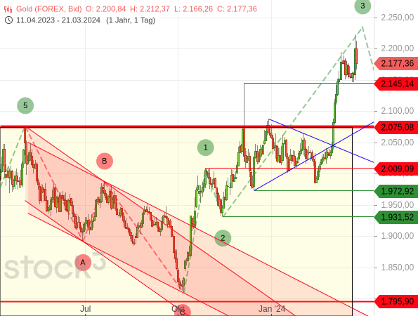Auch die Goldbullen haben sich somit auf die unverändert 3 (statt nur 2) Zinssenkungen im laufenden Jahr konzentriert und ignoriert, dass die Fed im kommenden Jahr die Zinsen weniger stark senken wird.