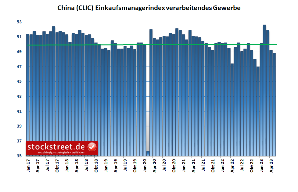 Die chinesische Industrie ist damit den zweiten Monat geschrumpft, und zwar schneller als erwartet. Denn Analysten hatten einen Index-Anstieg auf 49,4 prognostiziert.