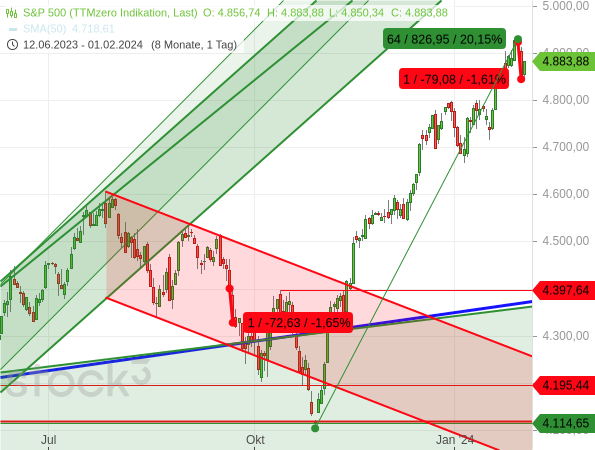 Als die US-Indizes vorgestern während der Pressekonferenz der US-Notenbank (Fed) wieder einmal zunächst zulegten, obwohl auch von dort eine klare Absage bezüglich einer ersten Zinssenkung schon im März kam, dachte ich mir: War ja klar! Und am Ende war ich überrascht, dass die Kurse doch noch deutlich ins Minus drehten.