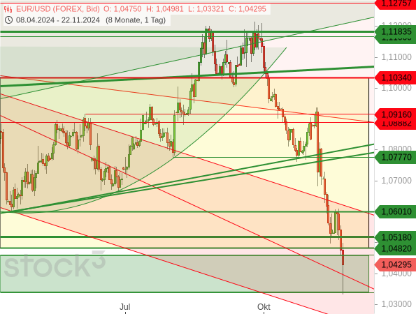 Damit sind die Aussichten für den EUR/USD aus fundamentaler Sicht schlecht. Aber diese sind nun (zumindest zu einem großen Teil) auch schon im Wechselkurs eingepreist. Eine Kurserholung erscheint daher möglich.