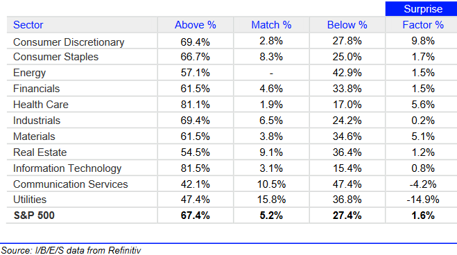 Zur Gewinnentwicklung im 4. Quartal 2022 gibt es positive und negative Veränderungen. Nach Vorlage von mehr als 80 % der Geschäftsberichte haben 67,4 % der Unternehmen aus dem S&P 500 die Gewinnerwartungen geschlagen, und zwar um durchschnittlich +1,6 %. Letzteres ist der niedrigste Wert seit Ende 2015. Am 25. Januar waren es 63,6 % bzw. +2,3 %. Der langfristige Durchschnitt liegt bei 66,3 % bzw. +4,1 %.