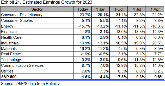 Insgesamt wird für das laufende Jahr 2023 ein Gewinnwachstum von gerade einmal noch 1,6 % erwartet, nach immerhin noch +5,2 % im vergangenen Jahr 2022.