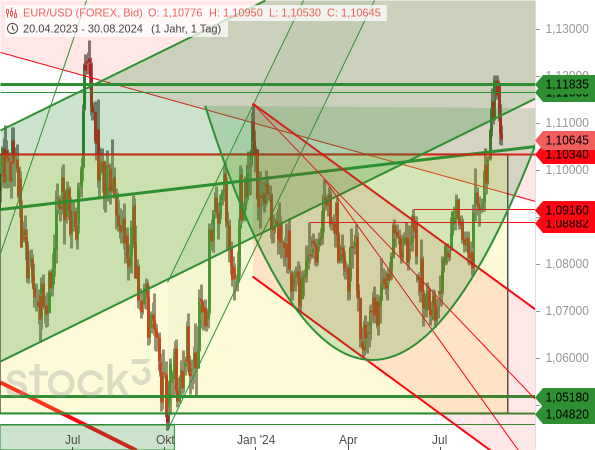 Fällt der EUR/USD in diese Range zurück, spricht dies dafür, dass sich die Seitwärtstendenz des Wechselkurses fortsetzt. Dann muss man theoretisch sogar damit rechnen, dass es deutlich weiter abwärts geht.