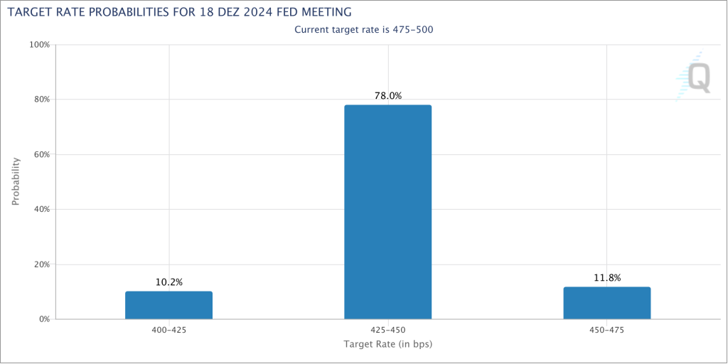 Und für Dezember ist eine weitere Senkung um moderate 25 Basispunkte mit fast 80 % eingepreist.