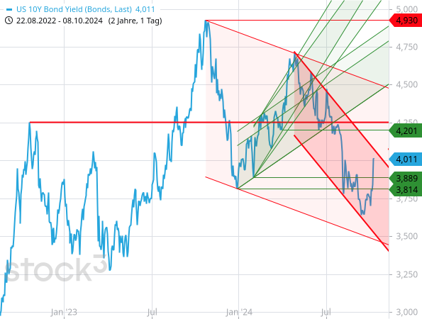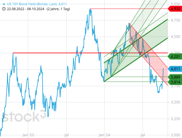 Die reduzierten Zinssenkungsfantasien spiegeln sich auch auf dem Anleihemarkt wider. Die Rendite der am Markt vielbeachteten 10-jährigen US-Staatsanleihen hat sich seit den Arbeitsmarktdaten kräftig erholt.