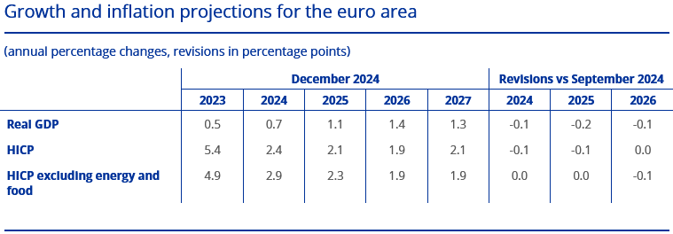 Im Statement ist dazu zu lesen, dass „die Finanzierungsbedingungen nach wie vor restriktiv“ sind, „weil die Geldpolitik restriktiv bleibt und sich die Zinserhöhungen der Vergangenheit nach wie vor auf den Kreditbestand auswirken“. Hieraus könnte man ableiten, dass weitere Zinssenkungen folgen werden. Dazu passen auch die reduzierten Wachstumserwartungen, die weitere Leitzinssenkungen erforderlich erscheinen lassen.