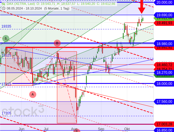 Eine größere Gegenbewegung auf die aktuellen Kursgewinne droht, wenn der DAX erneut unter die Marke von 19.491,93 Punkten zurückfällt und das dortige Tief des jüngsten Rücksetzers bei rund 19.400 unterschritten wird. Fallen die Kurse auch noch unter das alte Rekordhoch bei 18.892,92 Zählern, hätte eine längst überfällige neuerliche Korrektur begonnen, die eigentlich aufgrund des saisonalen Verlaufs längst fällig ist.