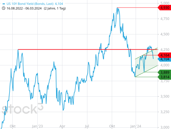 Bei solchen Wachstumsaussichten steht die US-Notenbank definitiv nicht unter Druck, die Zinsen schnell zu senken. Da der Leitzins aber mit über 5 % aktuell relativ hoch ist, wäre eine erste vorsichtige Senkung sicherlich in absehbarer Zeit möglich. Aber das ist nun kaum eine Neuigkeit. Und möglich war das auch schon vor den jüngsten US-Daten.