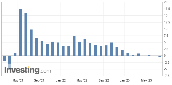 Und die Industrieproduktion schrumpfte sogar. Statt einer erwarteten Stagnation (0,0 %), kam es zu einem Rückgang um -0,5 % zum Vormonat. Zum Vorjahr lag das Minus bei -0,43 %, statt eines erwarteten Plus von +1,1 %.