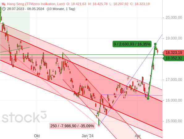 Der chinesische Hang Seng hat binnen 10 Handelstagen um mehr als 16 % zugelegt.
