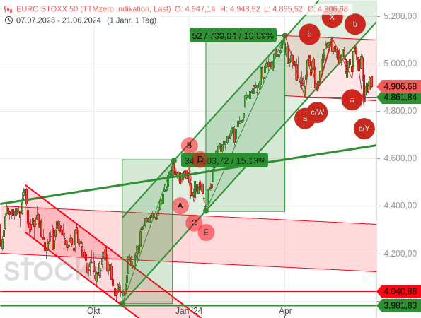 Hinzu kommt, dass auch das Ergebnis der Europawahl in Frankreich für Verunsicherung gesorgt hat. Damit lässt es sich auch begründen, dass die französischen Einkaufsmanagerindizes schwächeln. Das Barometer für den französischen Industriesektor fiel für Juni auf 45,3 Punkte, nach 46,4 Zählern im Mai, und der Index für den Servicebereich ging auf einen Wert von 48,8 abwärts, nach 49,3 im Mai. Beide liegen damit unterhalb der Wachstumsschwäche. Und vielleicht ist das wiederum ein Grund für das Wahlergebnis.