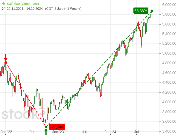 Zur Erinnerung: Am 13. Oktober 2022 markierte der S&P 500 sein Tief in der kräftigen Korrektur, die Anfang Januar 2021 begonnen hatte und in der er mehr als 20 % verlor. (Damit ist das formale Kriterium für einen Bärenmarkt erfüllt, aber aufgrund der relativ kurzen Dauer spreche ich lieber von einer Korrektur.)