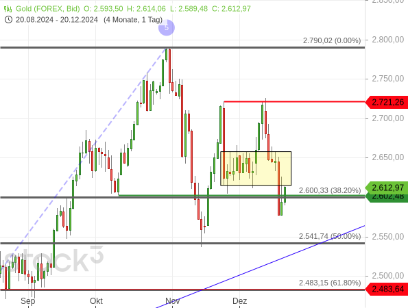 Hier kann man daher nun mit dem neuen Short-Versuch darauf hoffen, dass nicht nur am Aktienmarkt die charttechnisch überkaufte Marktlage abgebaut wird, sondern auch beim Goldpreis.