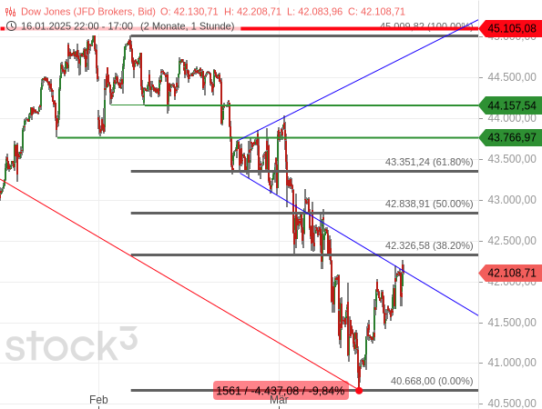 Dow Jones näher sich dem 38,20er Retracement