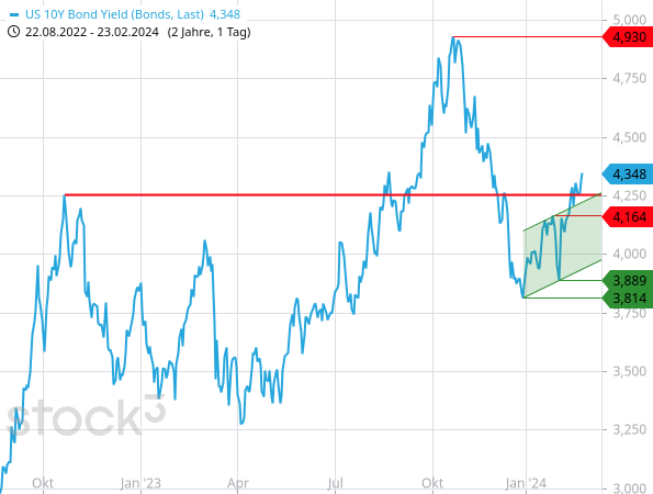 Am Anleihemarkt spiegelt sich das wider, indem zum Beispiel die Rendite der 10-jährigen US-Staatsanleihe auf das höchste Niveau seit Ende November geklettert ist.