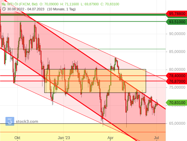 Auf eine anhaltend schwache Weltwirtschaft deutet auch hin, dass Saudi-Arabien zum Wochenauftakt ankündigte, seine freiwillige Ölförderkürzung von 1 Million Barrel pro Tag um einen weiteren Monat auf den August ausweiten zu wollen. Und sogar Russland erklärte sich bereit, seine Ölexporte im August zu reduzieren, um 500.000 Barrel pro Tag.
