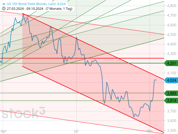 Es ist mit Sicherheit kein Zufall, dass die Rendite der 10-jährigen US-Staatsanleihe ebenfalls am 1. Oktober ein (höheres) Tief markiert hat und seitdem kräftig angestiegen ist.