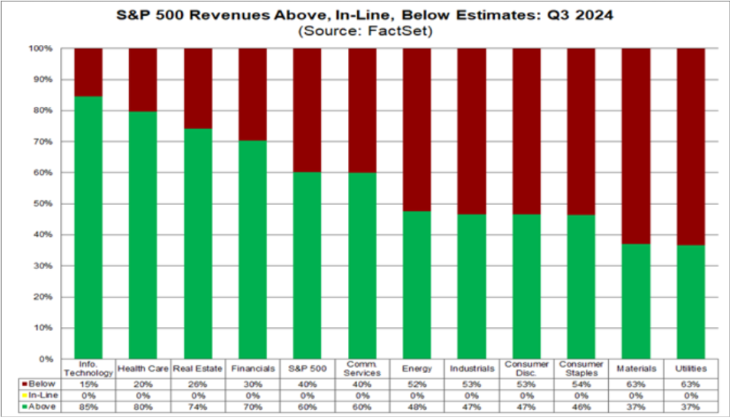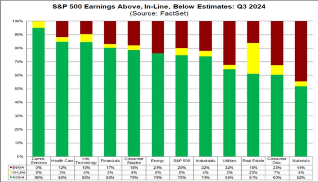 Schaut man auf die Kursentwicklung der Aktienindizes, könnte man annehmen, dass die noch laufende Berichtssaison zum 3. Quartal 2024 sehr erfolgreich verläuft. Doch das ist nicht der Fall. Wie FactSet berichtet, liegen sowohl die Anzahl als auch das Ausmaß der positiven Gewinnüberraschungen im Vergleich zu den Schätzungen unter ihren 5-Jahres-Durchschnitten.