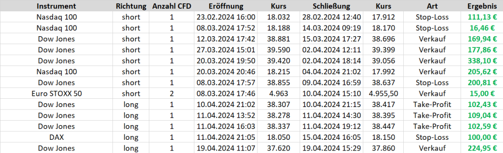Dies war übrigens schon der 13. Gewinntrade in Folge: