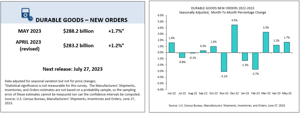 Aber darauf möchte ich heute gar nicht ausführlicher eingehen, sondern nun zu den positiven Nachrichten schwenken. Zwar fielen die Einkaufsmanagerdaten in den USA zuletzt leicht schwächer aus als zuvor (siehe Börse-Intern vom vergangenen Freitag), doch berichteten die Unternehmen laut S&P Global von einem Anstieg der Auftragseingänge. Und dies wurde vorgestern von offizieller Seite bestätigt: Das US-Handelsministerium meldete für Mai ein Plus bei den Auftragseingängen für langlebige Wirtschaftsgüter von 1,7 % im Vergleich zum Vorjahresmonat, nachdem es bereits im April zu einem Anstieg um 1,2 % und im März sogar +3,3 % gekommen war. Analysten hatten dagegen für Mai einen Rückgang um 1,0 % erwartet.