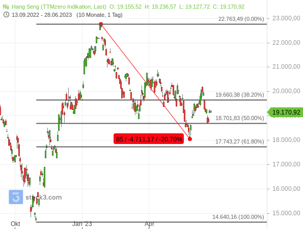 Mit Blick auf den Kursverlauf des Hang Seng (siehe folgender Chart) hatte ich bereits am 31. Mai geschrieben, dass Wirtschaft und Aktienmarkt in China zusammenpassen.