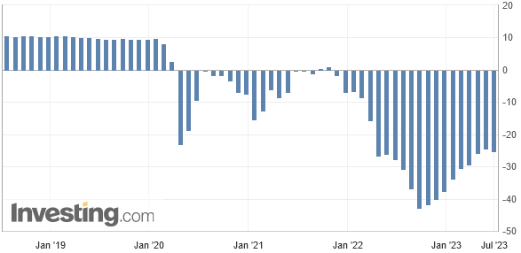 Was schlechte Nachrichten angeht, so möchte ich mich heute relativ kurz fassen. Denn davon habe ich in den vorangegangenen Ausgaben (leider) recht viel berichtet. Nur knapp sei daher erwähnt, dass die Gewinne chinesischer Industrieunternehmen in den ersten 5 Monaten des Jahres 2023 um 18,8 % im Vergleich zum Vorjahreszeitraum eingebrochen sind.