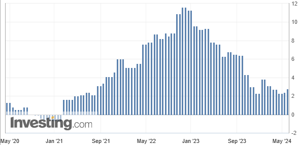 Neben der hartnäckig zu hohen Inflation in den USA hat die Teuerung in Deutschland wieder zugelegt. Der harmonisierte Verbraucherpreisindex (HVPI) legte im Mai um 2,8 % im Vergleich zum Vorjahr zu. Erwartet worden war ein Anstieg um 2,7 %, nachdem es im April nur +2,4 % waren.