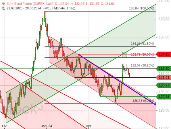 Man könnte also mit Long-Positionen auf den Bund-Future und (auch weiterhin) den Goldpreis auf baldige erneute Aufwärtsbewegungen setzen. Damit würde man auch auf Märkte setzen, die sich im Gegensatz zum (US-)Aktienmarkt derzeit nicht in einer gravierenden Schieflage befinden. Beim Bund-Future muss man lediglich darauf achten, dass die Marke von 131,62 Punkten nicht nachhaltig unterschritten wird. Und der Goldpreis sollte nach Möglichkeit nicht unter 2.270 USD fallen und dadurch die aktuelle Seitwärtskonsolidierung nach unten auflösen.
