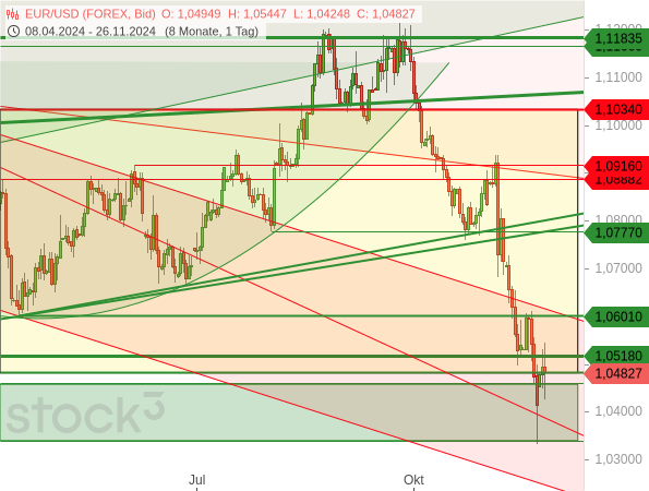 Stärker oder schneller sinkende Zinsen in der Eurozone sind allerdings schlecht für den Euro, da der Währungsraum dadurch weniger attraktiv für Anleger wird. Und daher ließen sich gestern in der Nacht nicht nur Rücksetzer am Aktienmarkt beobachten, sondern auch beim EUR/USD.