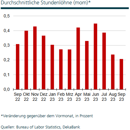 Die Löhne stiegen auch relativ moderat, im Vergleich zum Vormonat erneut nur um etwas mehr als 0,2 %, wie schon im August.