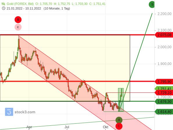 Der Inflationsdruck ist damit nach wie vor deutlich zu hoch. Und daher wird die US-Notenbank ihren Zinsanhebungspfad nun sicherlich noch nicht verlassen. Da aber die Inflationszahlen die Konsensschätzungen unterboten haben, sieht der Markt eine höhere Wahrscheinlichkeit, dass es im Dezember keinen weiteren 75-Basispunkte-Zinsschritt geben wird, sondern einen kleineren.