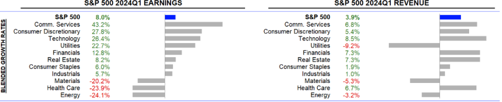 Zum Vergleich: Am 15. März, also vor einem Quartal, lagen die Gewinnerwartungen für das 2. Quartal 2024 bereits bei 10,2 % (siehe: „S&P 500: Kurse steigen schneller als die Gewinne“). Sie sind also nur leicht gestiegen, was ebenfalls dafür spricht, dass die Kurse der fundamentalen Entwicklung weiterhin davoneilen.