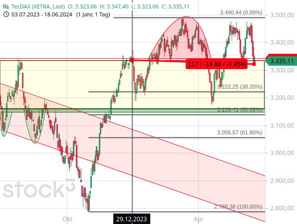 Und sein letztes Trendhoch hat der deutsche Technologieindex am 7. März markiert. Will man hier noch von einem Aufwärtstrend sprechen? Zumal sich die Kurse vorgestern auf dem Niveau vom 14. Dezember 2023 bewegten.