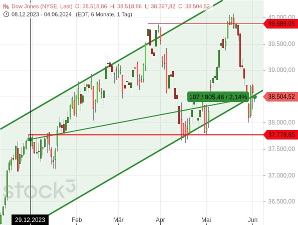 Der Dow Jones notiert nach seinem jüngsten Rücksetzer derweil nur noch geringfügig im Plus – vorgestern lediglich etwas mehr als 2 % seit Jahresbeginn.
