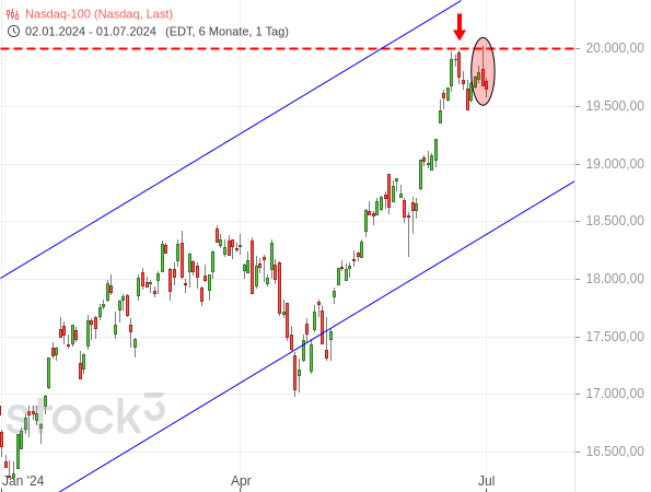 Damit könnten zwei Entwicklungen zum Abschluss gekommen sein: Erstens, das Window Dressing – schließlich müssen die Fondsmanager die Hype-Aktien nicht mehr kaufen, sondern dürften sie sogar verkaufen, wenn sie in die Verlustzone laufen. Und zweitens der Trade auf die runde 20.000-Punkte-Marke, die just zum Halbjahresultimo erreicht wurde (Hoch bei 20.017,71 Punkten). Auch die Zocker können also ihre Positionen nun auflösen.