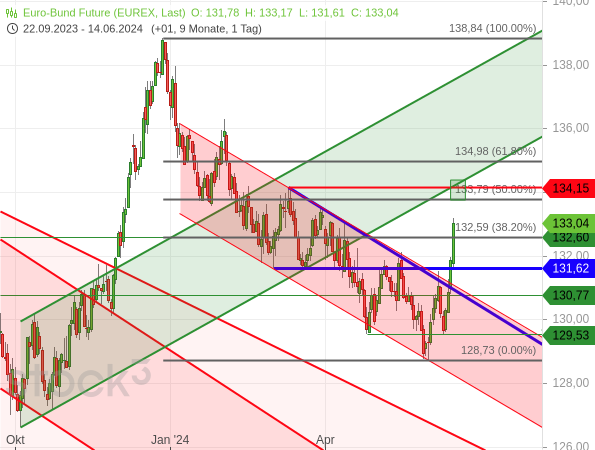 Leser des Chartanalyse-Dienstes „Target-Trend-Spezial“ können sich dadurch mit dem am 3. Juni vorgeschlagenen Long-Zertifikat alleine gestern über Kursgewinne in Höhe von mehr als 11 % freuen. Insgesamt sind es seit dem 3. Juni mehr als 33 %. Am 6. Juni hatte ich im Newsletter „Börse-Intern“ geschrieben, dass da noch mehr drin ist. Und der aktuelle Aufwärtsimpuls des Bund-Future spricht für weitere Kursgewinne.