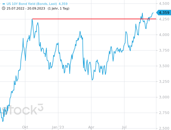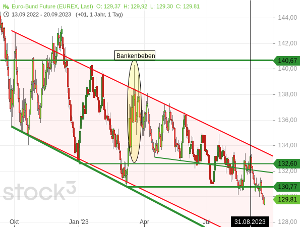 Der jüngste Aufwärtsimpuls der Renditen bzw. Abwärtsimpuls des Bund-Futures begann übrigens am 31. August. An diesem Tag machten sich die Ölpreise auf, erneut wichtige Hürden zu überspringen – beim WTI die Marke von 83,515 US-Dollar bzw. das Hoch von Mitte April. Man kann also argumentieren, dass die zunehmenden Inflationsgefahren zu zunehmenden Zinssorgen geführt haben.