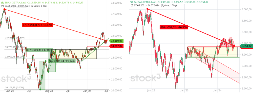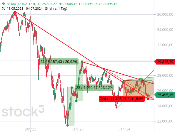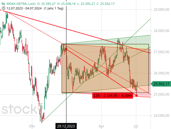 Und die Kursentwicklung von Teilen des Aktienmarktes passt zu den fundamentalen Entwicklungen. So rutschte der MDAX zum Beispiel am Dienstag auf ein neues Korrekturtief und das niedrigste Niveau seit November 2023.