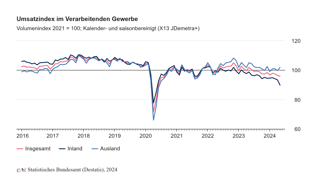 Und wenn man sich die Grafiken des Statistischen Bundesamtes zu den Auftragseingängen und Umsätzen der Industrie anschaut, dann begann genau zu diesem Zeitpunkt die Flaute der deutschen Wirtschaft.
